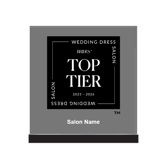 This smoked glass award is customized with the Brides Top Tier logo and salon name.