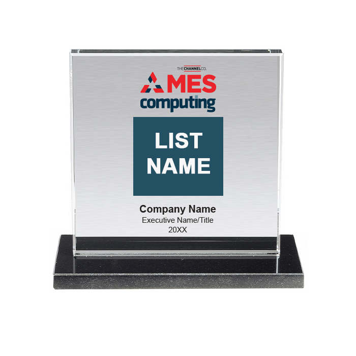 This desktop award has a glass background and sits on a granite base and includes official MES Computing logo.