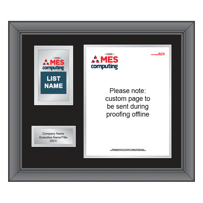 Showcases a custom MES Computing list page and includes a plate for customization and authentic MES Computing list logo.